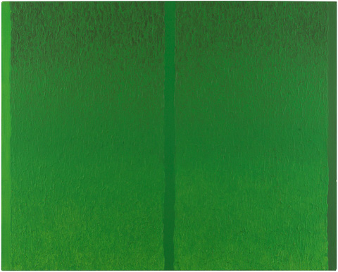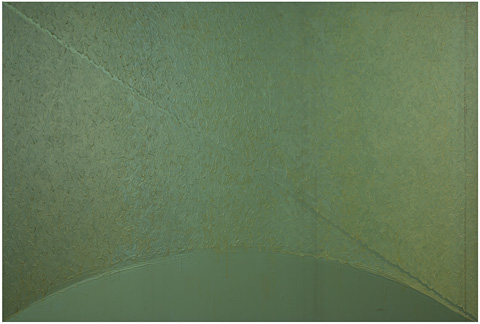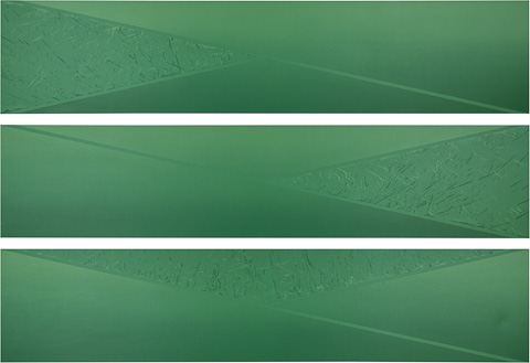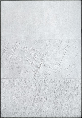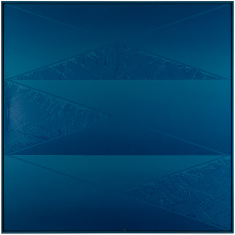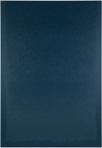 フライ氏が「見る音楽」と呼ぶこともできると記した作品群。「近藤の直近の作品はまさに彼のベストだ。最新の絵で彼は彼の視覚的経験の複雑さの上に、さらに別の、視覚版のフーガ的メロディを加えている。この新しいメロディは、いわば絵画的言語のテクスチャーである。」「彼は一つの芸術作品の中で、音楽の時間次元の中で発生する和声的発展と複雑性ばかりか、絵画の現前性、開示性、同時性をも統合するのである。したがって我々は彼の作品群を「見る音楽」と呼ぶこともできる。それらを総体として観るとき、まるで音楽を聴くようにゆっくりした時間連続の中で味わうこともできるから。だからこそ、彼のアートを十分に理解するには、忍耐と静寂と、そして精神と感覚の両方の関与が求められるのである。」とフライ氏は記した。帰国後に描いたBlue Painting:J-09 と Gray Painting:J-09 は、近藤作品の至上の理解者であり、同世代であり、1992年に56歳で没したフライ氏への追億の絵であるようにも思われる。