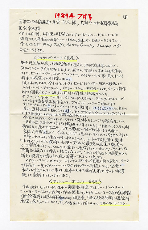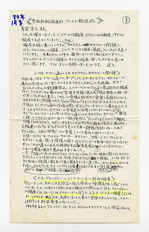 芸術新潮 ワールド・スナップ欄 1989年9月号